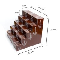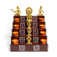Our exquisite wooden 5 step long steps are made from pure wood and adorned with a vibrant design, this step holder is perfect for lamps, candles and other sacred objects. Its sturdy construction ensures longevity, making it a valuable addition to your puja room.