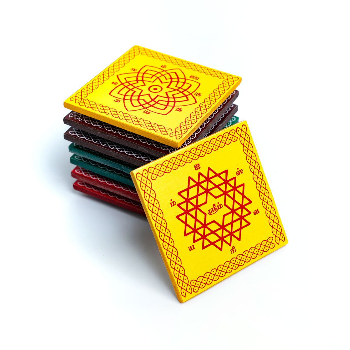 Wooden Pooja Bush Manai is crafted from pure wood and adorned in vibrant multicolor, it features the auspicious Aishwaryam Lakshmi Kolam design. Ideal for placing puja items, statues, and other sacred objects, this manai adds a touch of spiritual elegance to your pooja room.