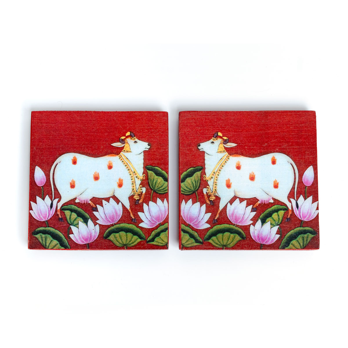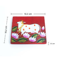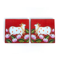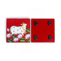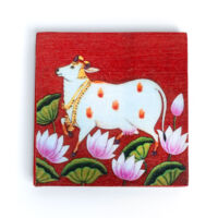 Wooden Pooja Bush Manai Pichwa red cow is crafted from pure wood and adorned in vibrant multicolor, it features the auspicious Aishwaryam Lakshmi Kolam design. Ideal for placing puja items, statues, and other sacred objects, this manai adds a touch of spiritual elegance to your pooja room.