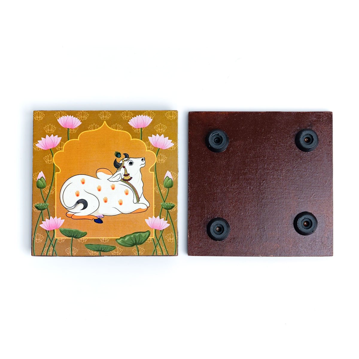 Be the first to review “Wooden pooja bush Manai pichwa yellow cow right side”