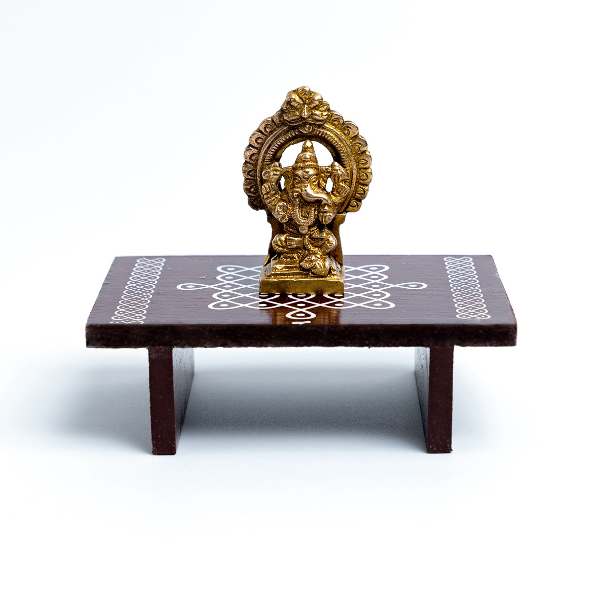 Our exquisite Wooden Pooja Chowki is made from pure wood and adorned with a vibrant multicolor aishwaryam lakshmi kolam design, this chowki is perfect for holding puja items, statues, and other sacred objects. Its sturdy construction ensures longevity, making it a valuable addition to your puja room.