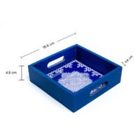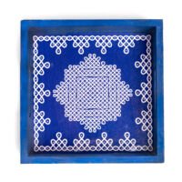 Our exquisite Wooden Pooja tray is made from pure wood and adorned with a vibrant multicolor mani kolam design, this tray is perfect for holding puja items, statues, and other sacred objects. Its sturdy construction ensures longevity, making it a valuable addition to your puja room.