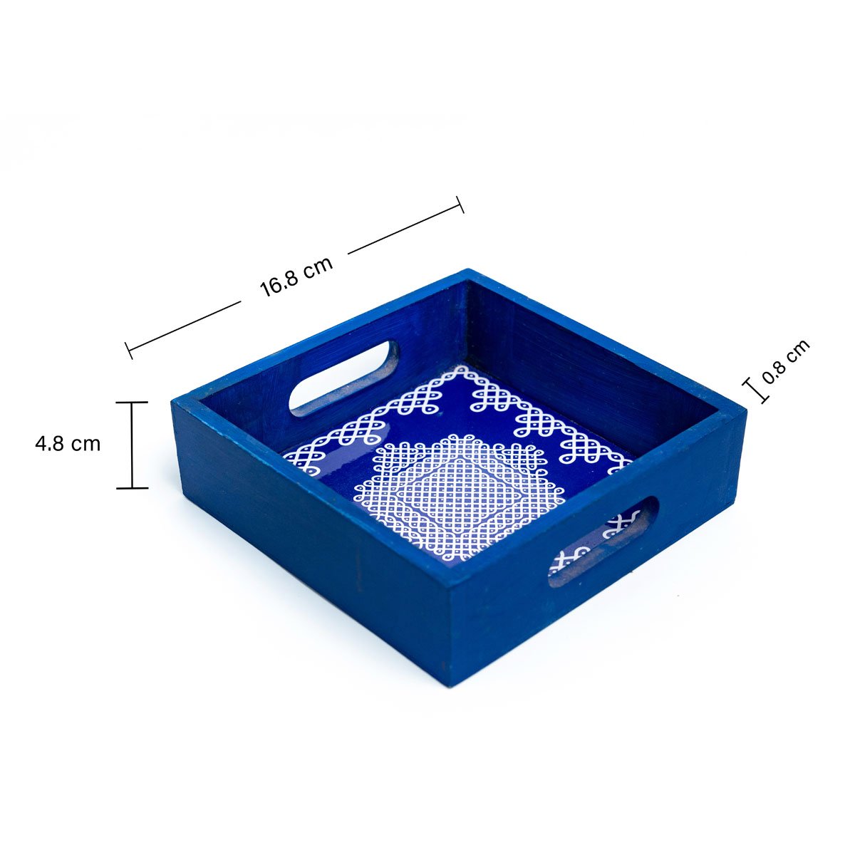 Our exquisite Wooden Pooja tray is made from pure wood and adorned with a vibrant multicolor mani kolam design, this tray is perfect for holding puja items, statues, and other sacred objects. Its sturdy construction ensures longevity, making it a valuable addition to your puja room.